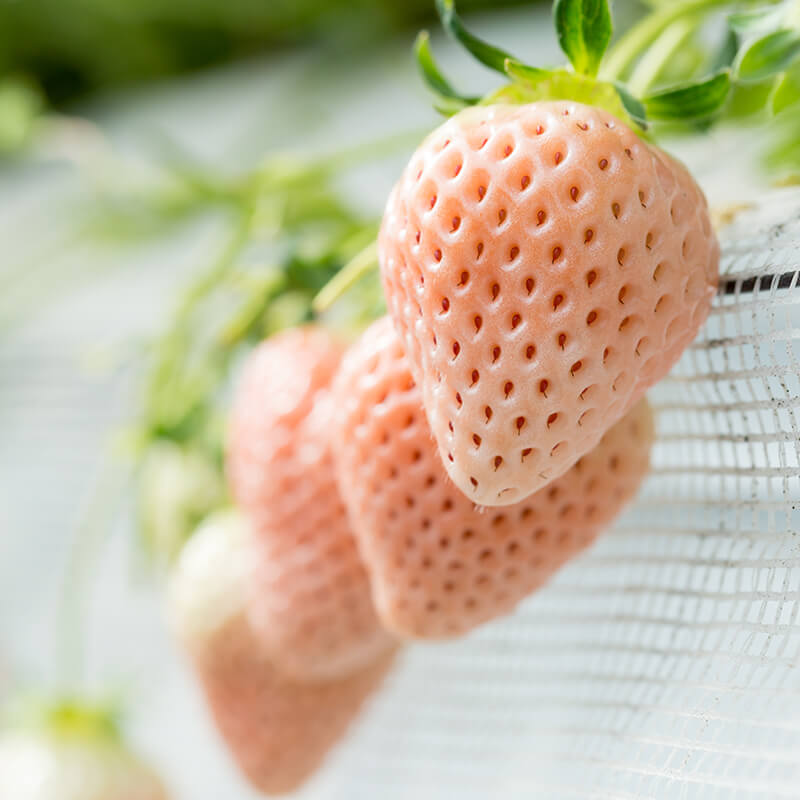 酸味が少なく、やさしい香りと甘みが特徴で、ほのかな桜色が美しいイチゴです