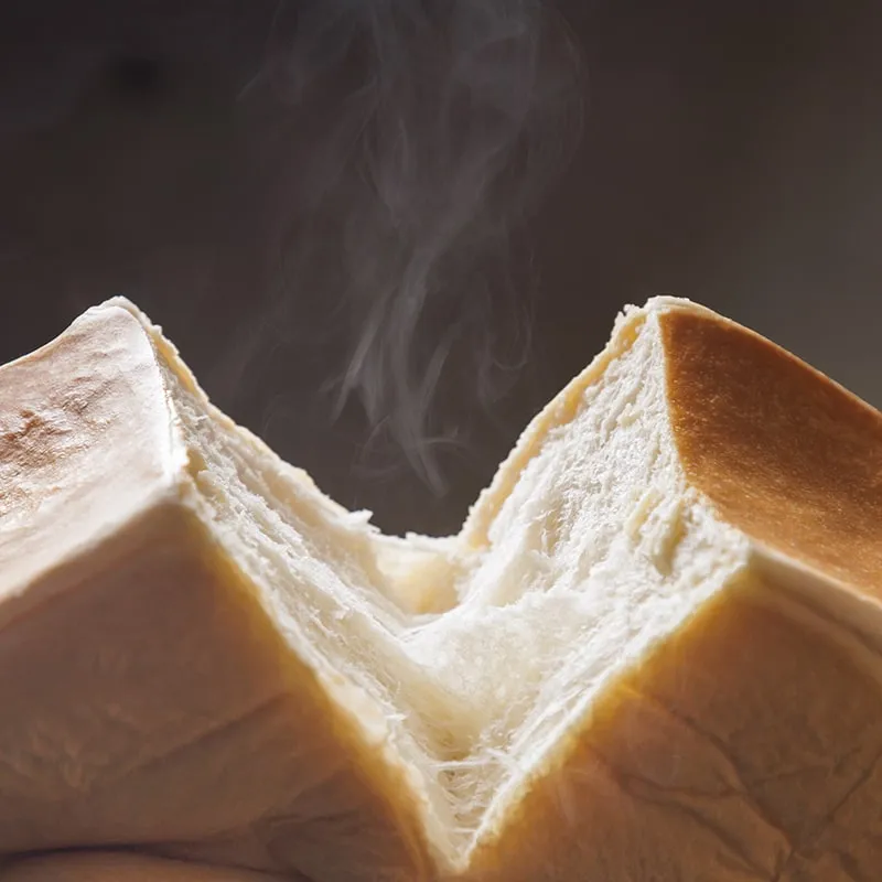 ぎりぎりの焼き時間で水分を閉じ込めることで、しっとりきめ細やかな純白の生地に仕上がります。