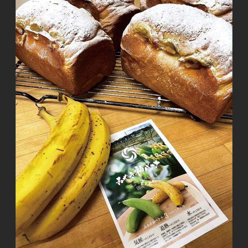 神埼市の脊振山のふもとにあるパン屋さん「ベーカリーフルサークル」の佐賀県産のバナナ(みやき神バナナ)を使用した食パン。