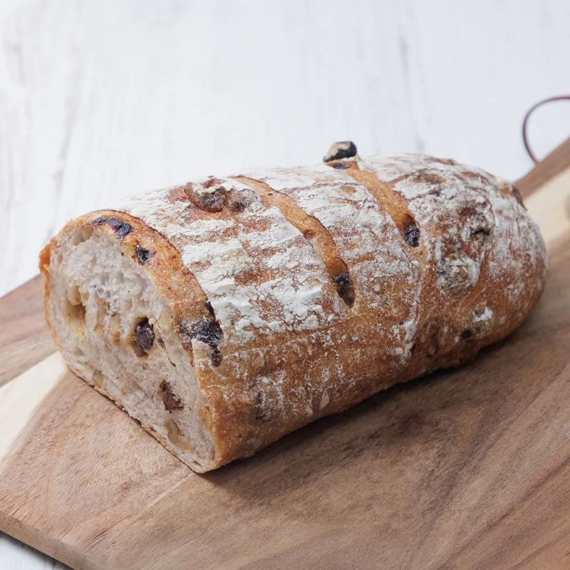 一週間じっくりラム酒に漬け込んだ大粒の厳選レーズンと、香ばしくローストしたくるみをたっぷりと使った、贅沢なハードブレッドです。